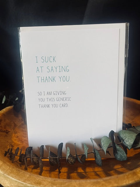 prairie chick prints 5x7 greeting card. white card with teal and black lettering. white envelope. blank inside. thick cardstock.