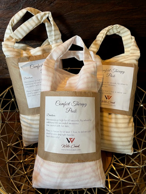 willo creek linen neck wrap. use hot and cold to sooth all your muscle aches and pains. reusable.